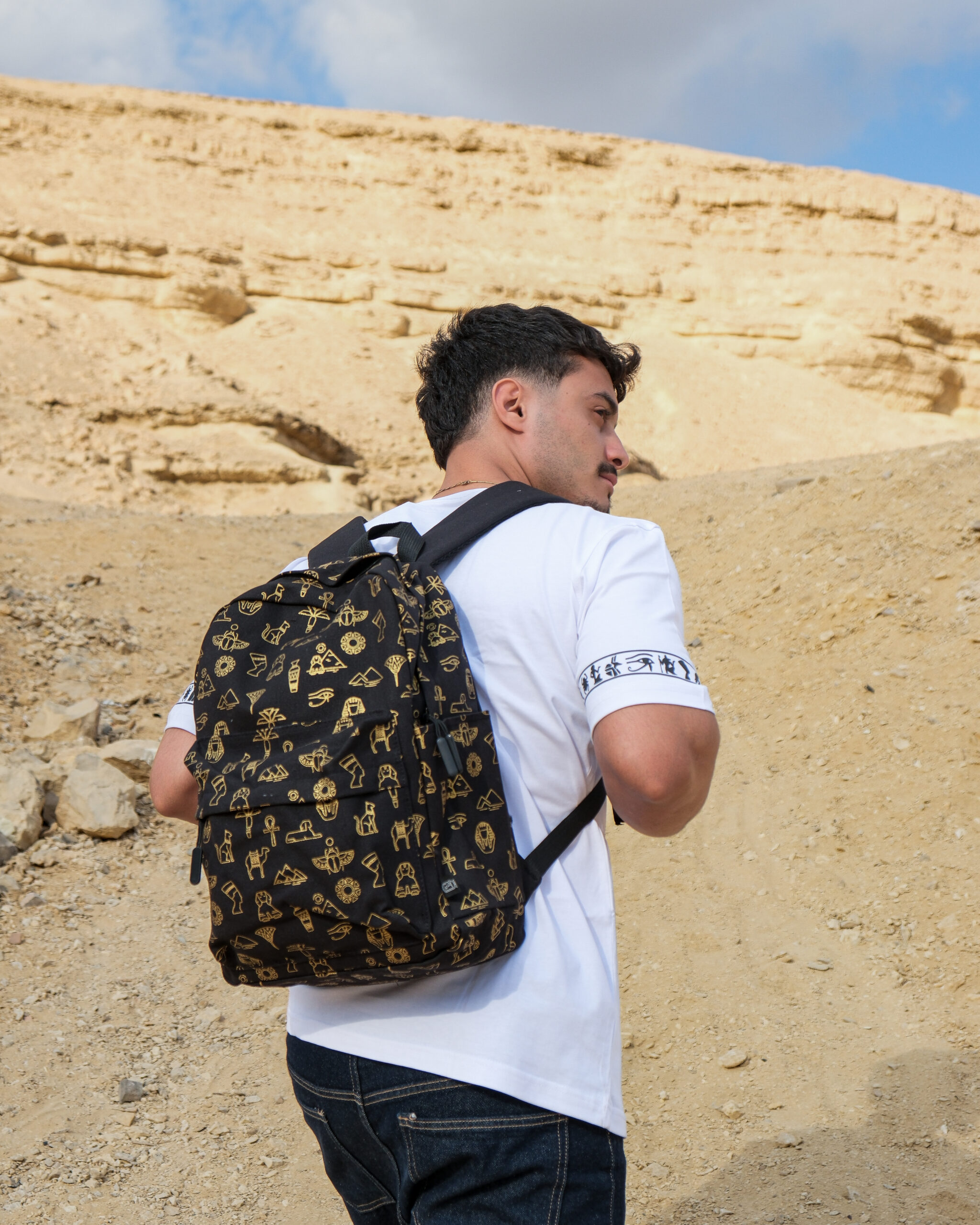 - printed with Egyptian symbols and kings (covering the front and sides of the bag)